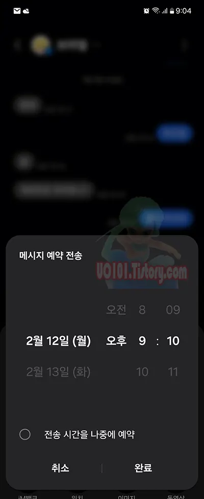 - 메시지 예약 전송 시간을 선택하고 '완료'를 선택합니다